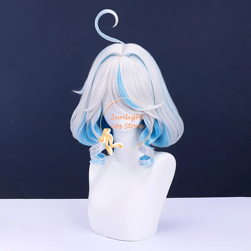Furina Focalors Cosplay Wig 35cm/100cm Long Cruly Silver White Blue Women Anime Wigs Heat Resistant Synthetic Hair + Wig Cap