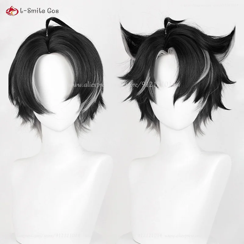 Fontaine Wriothesley Cosplay Wig 30cm Black Gradient Gray Wigs Heat Resistant Synthetic Wigs Party Wig + Wig Cap