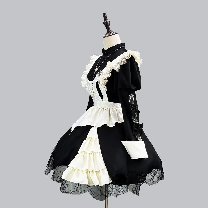 Das Kleid besteht aus sorgfältig ausgewählten, hautfreundlichen Stoffen, die nicht nur angenehm zu tragen sind, sondern auch durch ihre Langlebigkeit überzeugen. Die weiche Baumwollmischung sorgt für ein angenehmes Hautgefühl, während feine Spitze und dekorative Bänder dem Design seinen charakteristischen Gothic-Touch verleihen. Dank des durchdachten Schnitts bietet das Kostüm eine schmeichelhafte Passform für jede Figur – von Größe S bis 5XL!