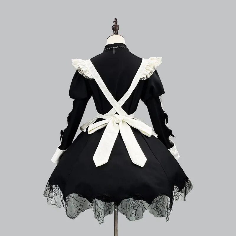 Das schwarze Gothic Maid Kleid begeistert mit liebevollen Details: Puffärmel, ein ausgestellter Rock mit dekorativen Spitzenabschlüssen und eine auffällige Schürze in typischer Maid-Optik machen das Outfit zum absoluten Hingucker. Die Schnürung am Rücken sorgt nicht nur für eine individuelle Anpassung, sondern unterstreicht auch die feminine Silhouette. Ob als Cosplay auf Conventions, für Fotoshootings oder als Highlight auf der nächsten Party – mit diesem Kleid bist du immer perfekt gekleidet.