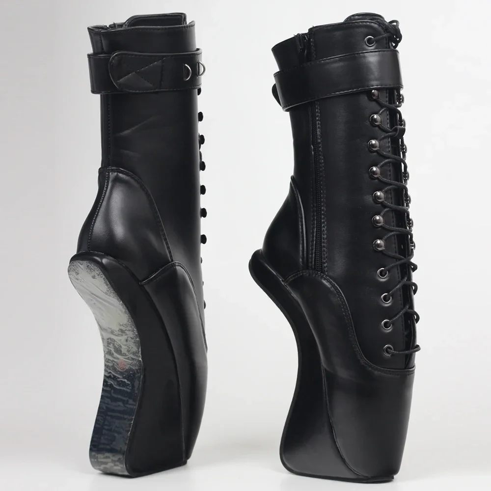 18CM/7″ High Heel Hoof Sole Heelless Strange Style Boots Women Sexy Fetish Ballet Pointe Lockable Ankle Boots