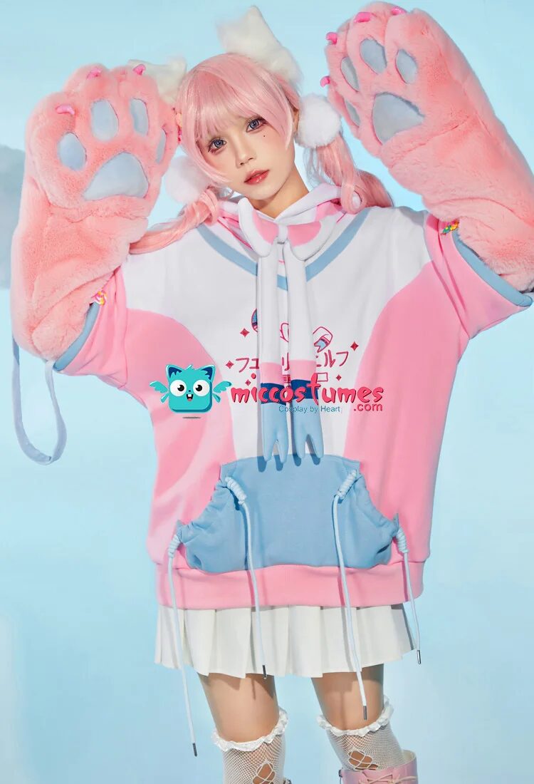 Die Fellpfoten Handschuhe Kawaii Sweatshirt mit abnehmbarer Tasche ist ein süßes und praktisches Pullover Hoodie. Es verfügt über niedliche Fellpfoten-Handschuhe, die an den Ärmeln befestigt sind, sowie eine abnehmbare Tasche, die auf der Vorderseite des Hoodies angebracht werden kann. Der Pullover ist bequem und ideal für kühle Tage. Ein tolles Kleidungsstück für alle, die einen verspielten und einzigartigen Look lieben.