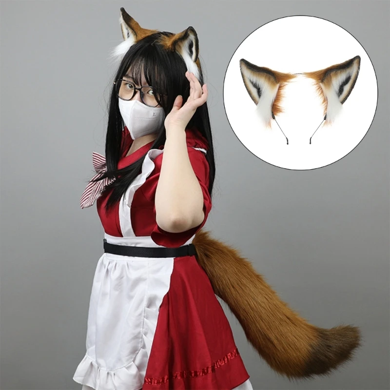 Furry Ear Anime Cosplays Hair Accessory Animal Ears Charming Foxes Headband Cute Plush Headdress for Costume Party