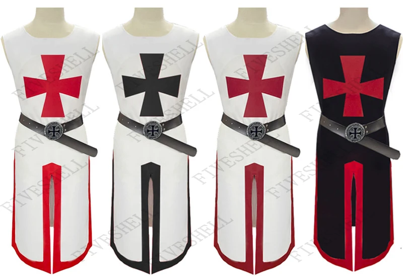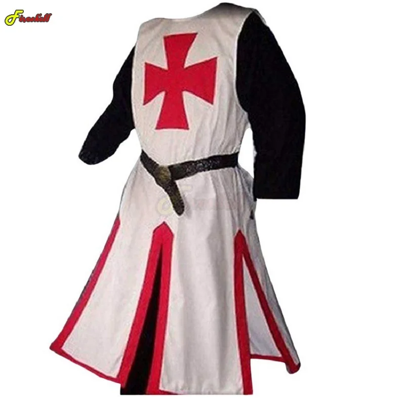 Große Größe Männer Mittelalter Cosplay Gewand Templer Ritter Kreuzritter Surcoat Langarm Kurzarm Oberteile Kostüm Reenactment