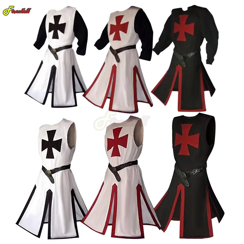 Mittelalterliche Cosplay-Roben Templer Ritter Kreuzritter Surcot Langarm Kurzarm Herren Tops Kostüm Wiederaufführung
