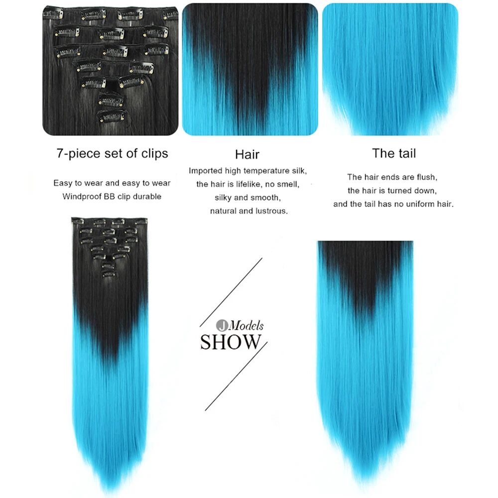 16 Clips Kunsthaarverlängerungen 22 Zoll Lang Glatt Clip-on Haarverlängerungen 7 Stück/Set hitzebeständige Faser Haarteil Für Frauen